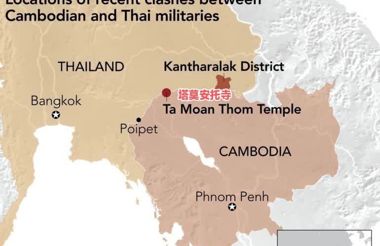 泰军4架战机越境轰炸,8艘军舰进入战位,中制军舰迎来大内斗? 柬泰边境冲突进入第3天,阵仗越来越大。最新消息显示,目前双方在边境的12个点位都有过或正在交火。柬方还在26日控诉,泰军已经在柬埔寨沿海部署了8艘军舰。从地图看(图1),这些军舰可能是从泰国达叻府沿海一路向南开过去的。 而泰军则在26日下午再次出动了4架战斗机(2架F-16,两架瑞典制“鹰狮”)进行越境轰炸,应该是想摧毁柬军的炮兵阵地。其中一个目标是塔莫安托寺附近,那里也是此次边境冲突爆发的起始点。 不过,柬方没有提到8艘军舰具体都是哪些,所以我们也无从得知其中是否有“中国制造”。根据公开资料,目前,泰国海军装备有9艘产自中国的军舰,分别是071型综合登陆舰(排水量达到2.5万吨),以及2艘053H2G型导弹护卫舰、4艘昭披耶级护卫舰、2艘北大年级巡逻舰。 而柬埔寨海军的中制军舰就更多了,不过吨位更小,从公开资料看,有2艘056型导弹护卫舰、15艘快速巡逻艇、1艘登陆艇。如果柬泰两国海军开战,我们没准会看到中国制造的军舰的“大内斗”。 当然,这些装备都是我们在冲突开始前出售的。就在25日,解放军代表还特意让泰国驻华使馆助理武官给其国内带了句话,强调柬泰交火后,中方没有向柬埔寨提供一枪一弹。显然,这就是在告诉所有人,我们没有偏帮任何一方,而是会说到做到,秉持公正立场,继续劝谈促和。