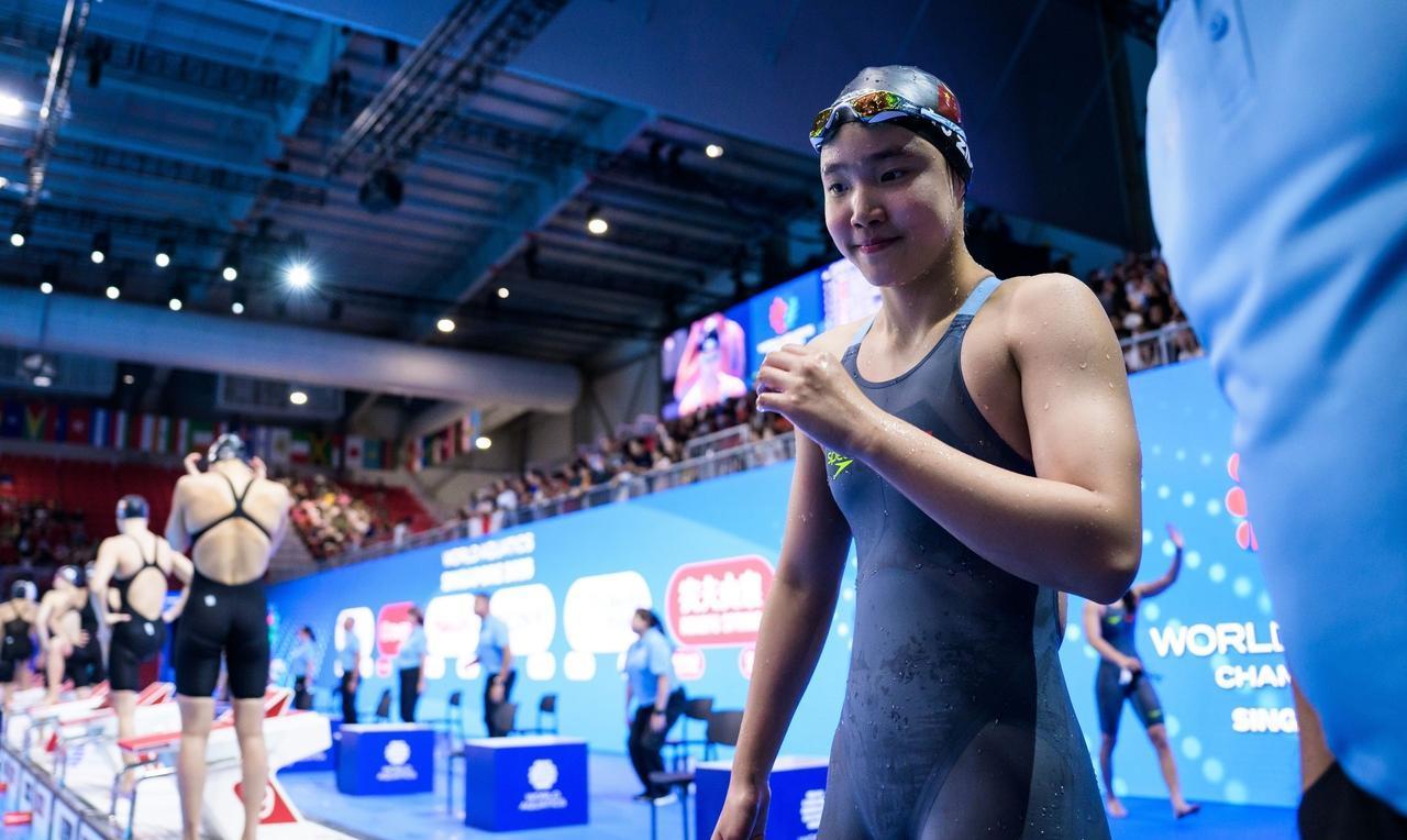 中国12岁游泳神童于子迪在世锦赛女子200米混合泳半决赛以2分10秒22获得小组
