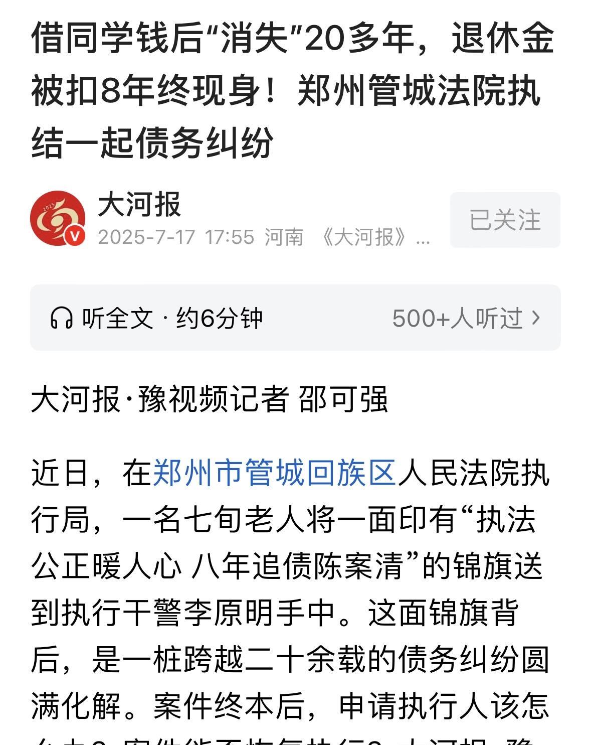 “老同学,你欠我的钱,基本上都从你的退休工资里扣完了,剩下的也别给了,你也认错了