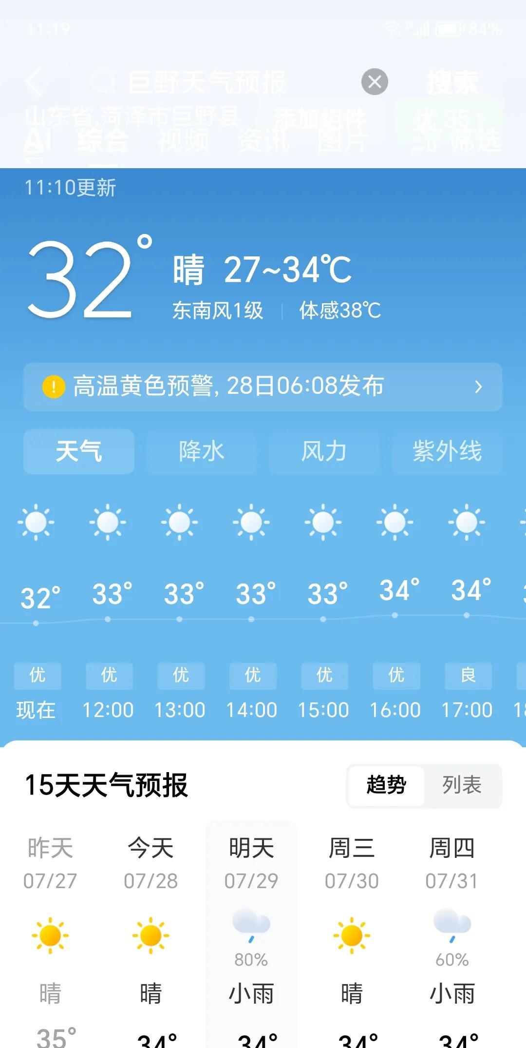 山东菏泽又来雨了,7月29日,小雨。降水概率80%,降雨量6mm。不过单县曹县的