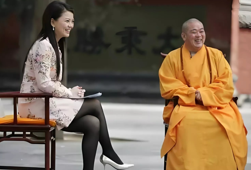 2008 年,那是不平凡的一年,有汶川地震的伤痛,有北京奥运的辉煌,也有李湘一次特别的少林寺之行。这一年 32 岁的李湘,身着黑丝高跟鞋搭配粉色短裙,一头黑长直头发,时尚靓丽,前往河南嵩山少林寺采访已担任近十年住持方丈、42 岁的释永信。 从形象上看,李湘的打扮充满了现代都市的时尚感,与少林寺庄严肃穆的氛围形成了鲜明对比,却又巧妙融合。而释永信方丈身着僧袍,神情祥和,尽显出佛门高僧的沉稳与智慧。 这一年李湘演艺事业也有亮点,电影《十全九美》上映。这次少林寺采访或许也是她拓展事业版图、丰富主持经历的一次尝试。采访中两人相谈甚欢还合影留念,为 2008 年留下了一段别样的记忆。