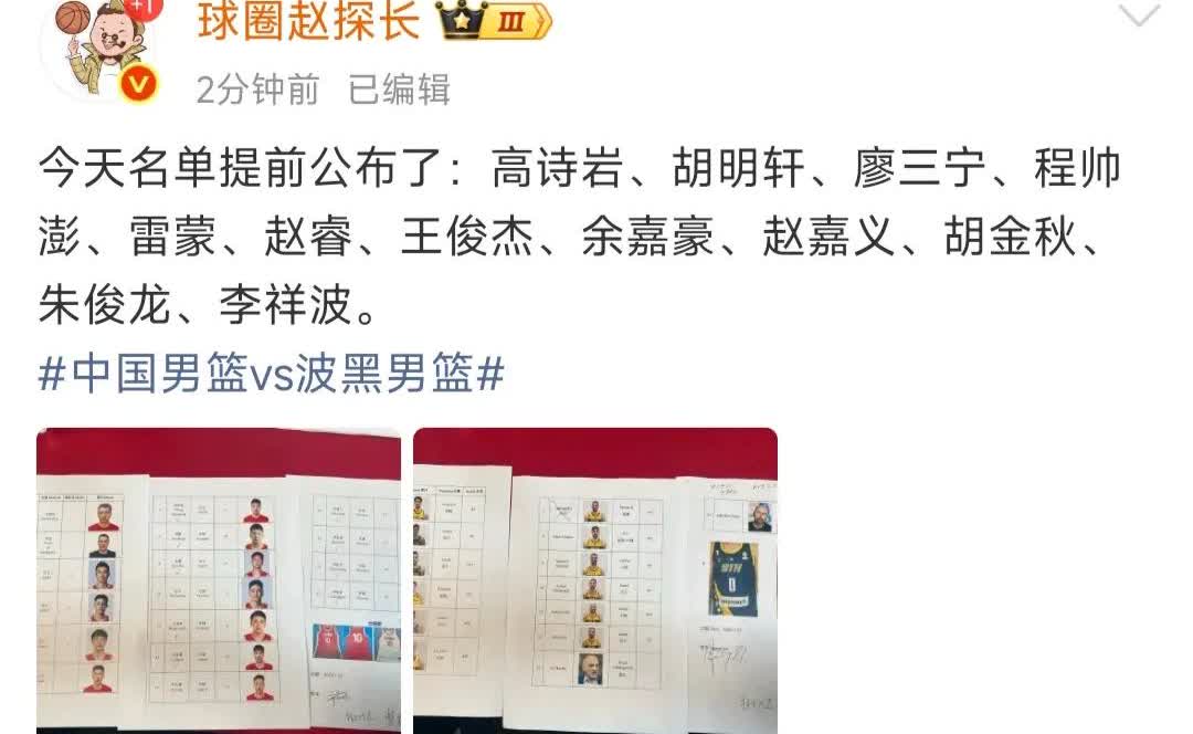 高诗岩再次挤掉徐杰,男篮同波黑比赛,12人名单中带6个后卫,徐杰、高诗岩和李祥波