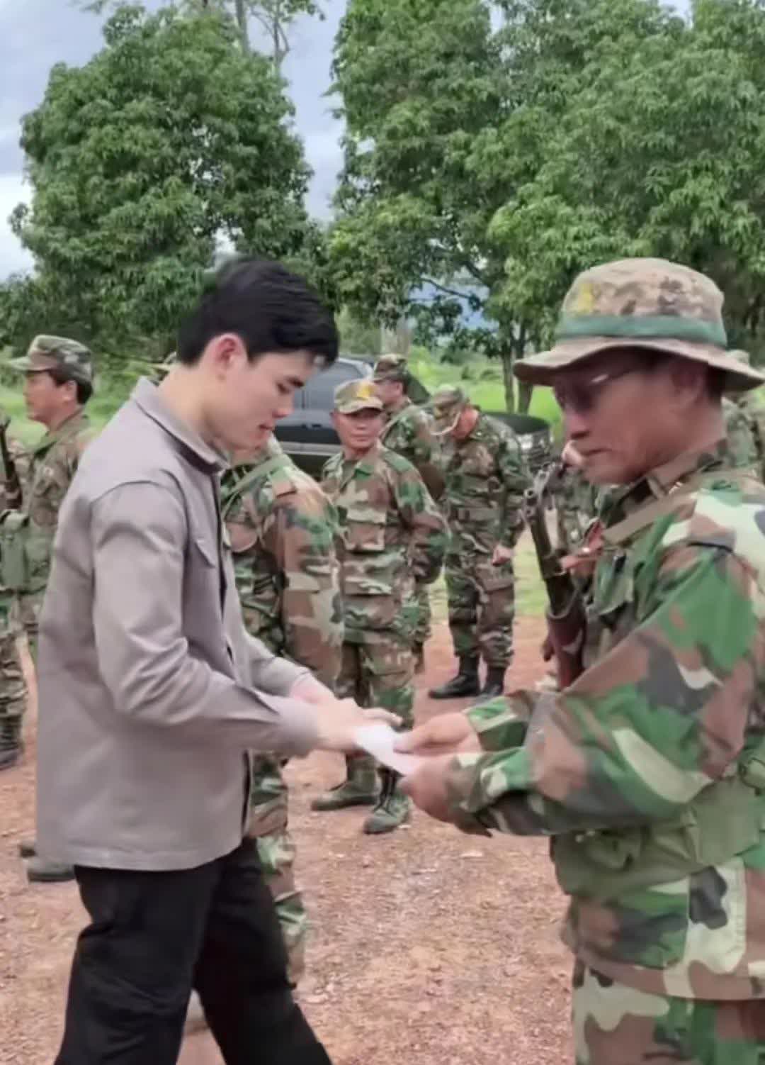 柬网红给士兵发钱,柬埔寨网红和企业家为士兵发现金,鼓励士兵抵抗入侵者,网红挨个发