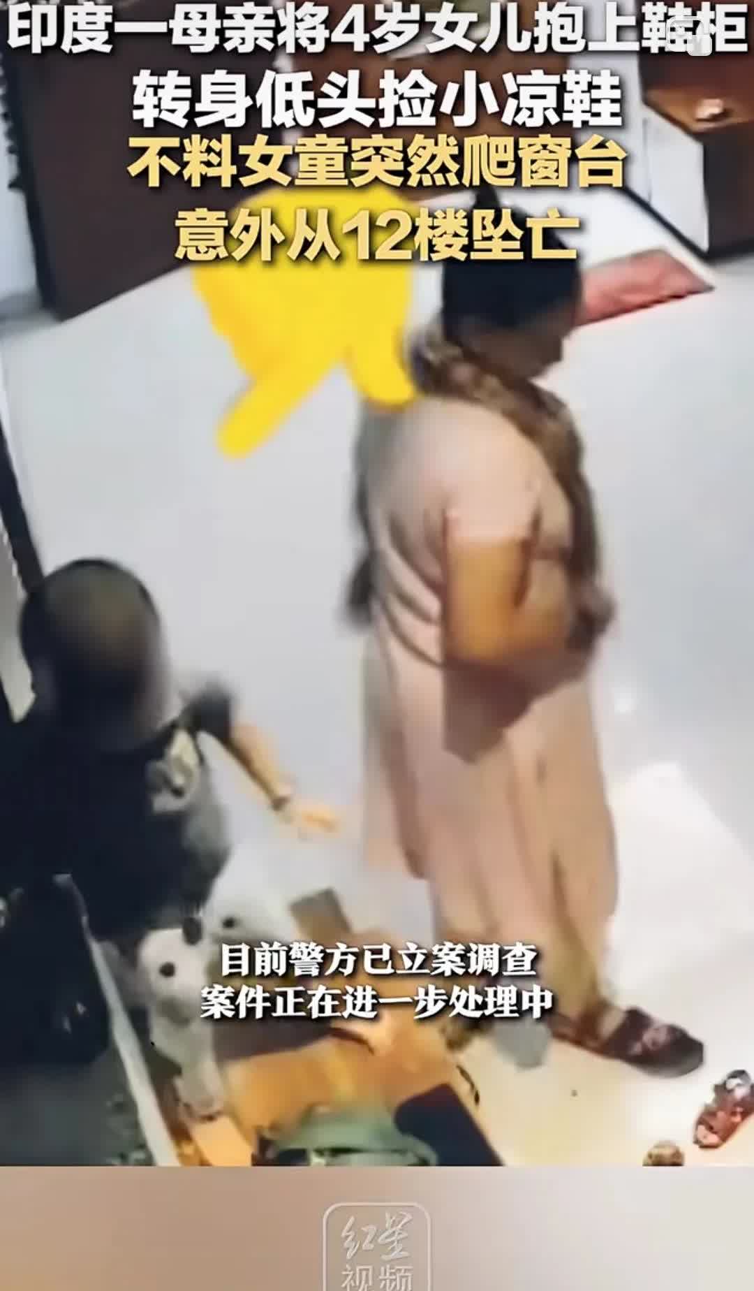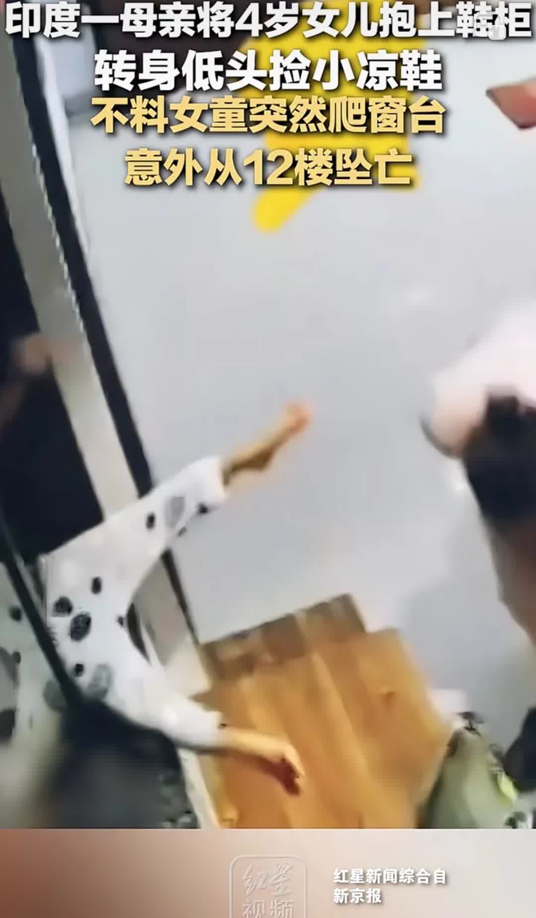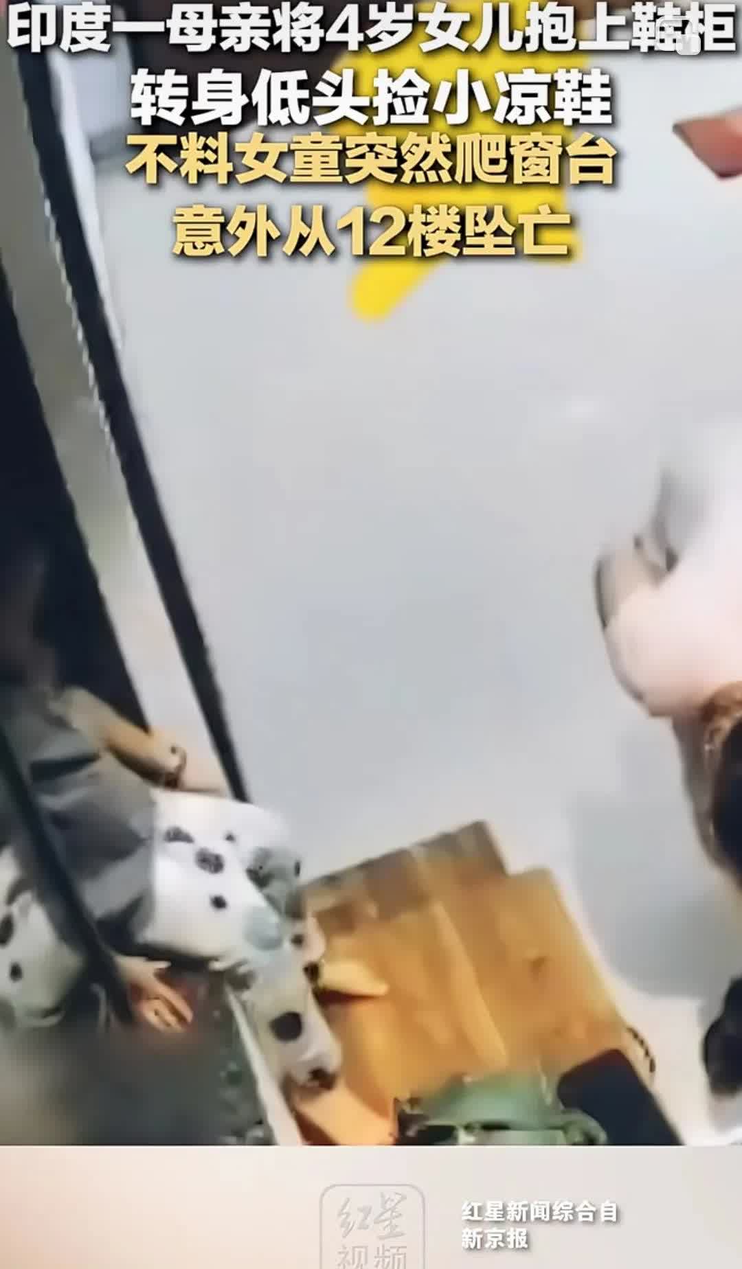 近日,印度发生一起惨剧,一对母女准备外出,在换鞋的时候,妈妈顺手把孩子放在了窗前