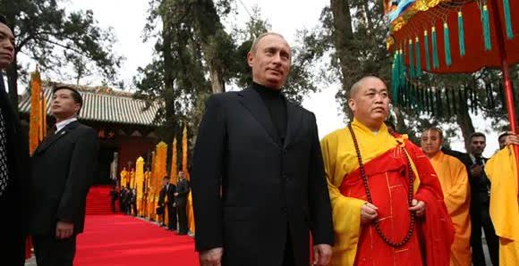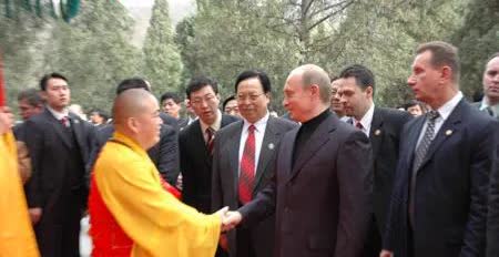 普京总统2006年来到少林寺,拜访少林方丈大师释永信。 释永信:赠他一套武功秘