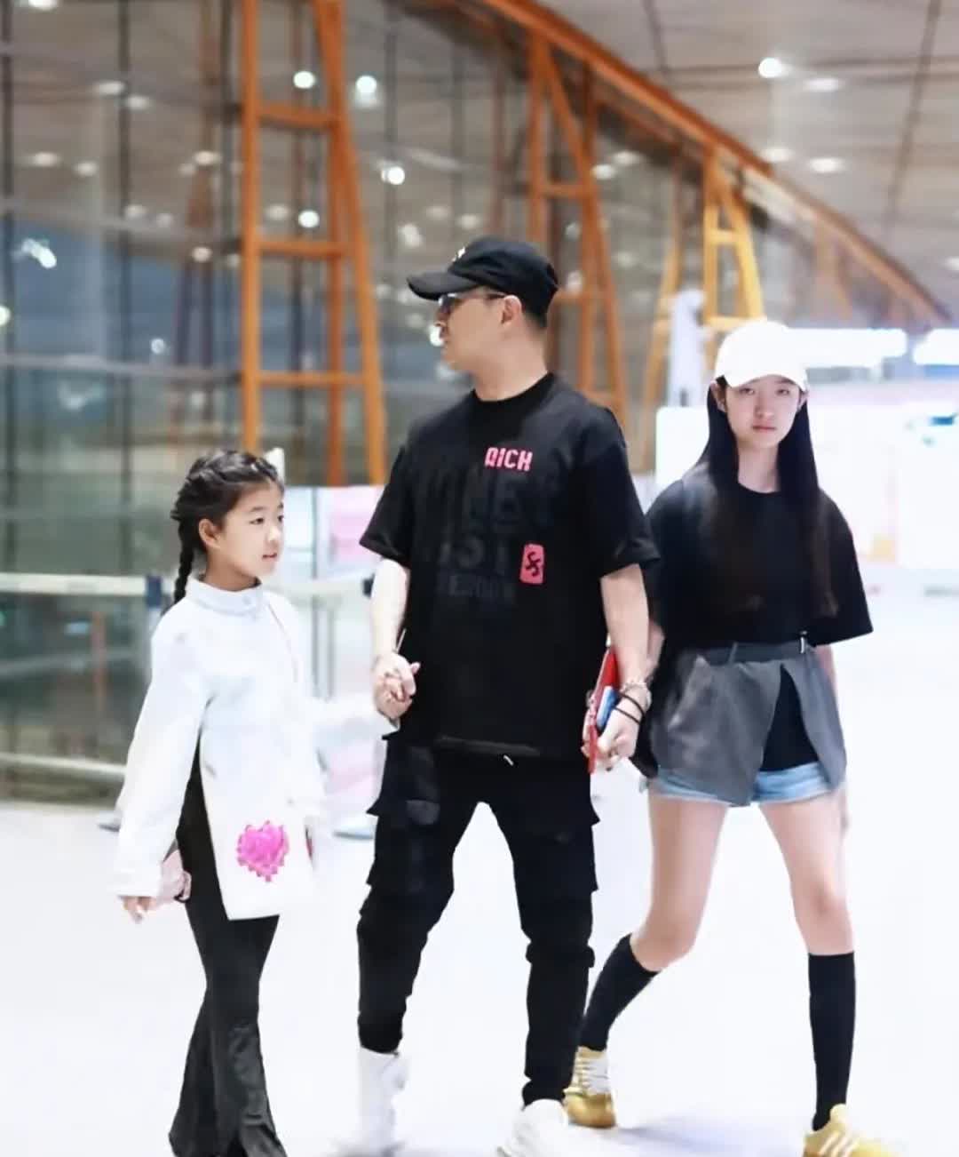 汪峰带三个女儿旅游回国, 现身机场! 右手拉着醒醒,左手牵着二女儿,后面跟着