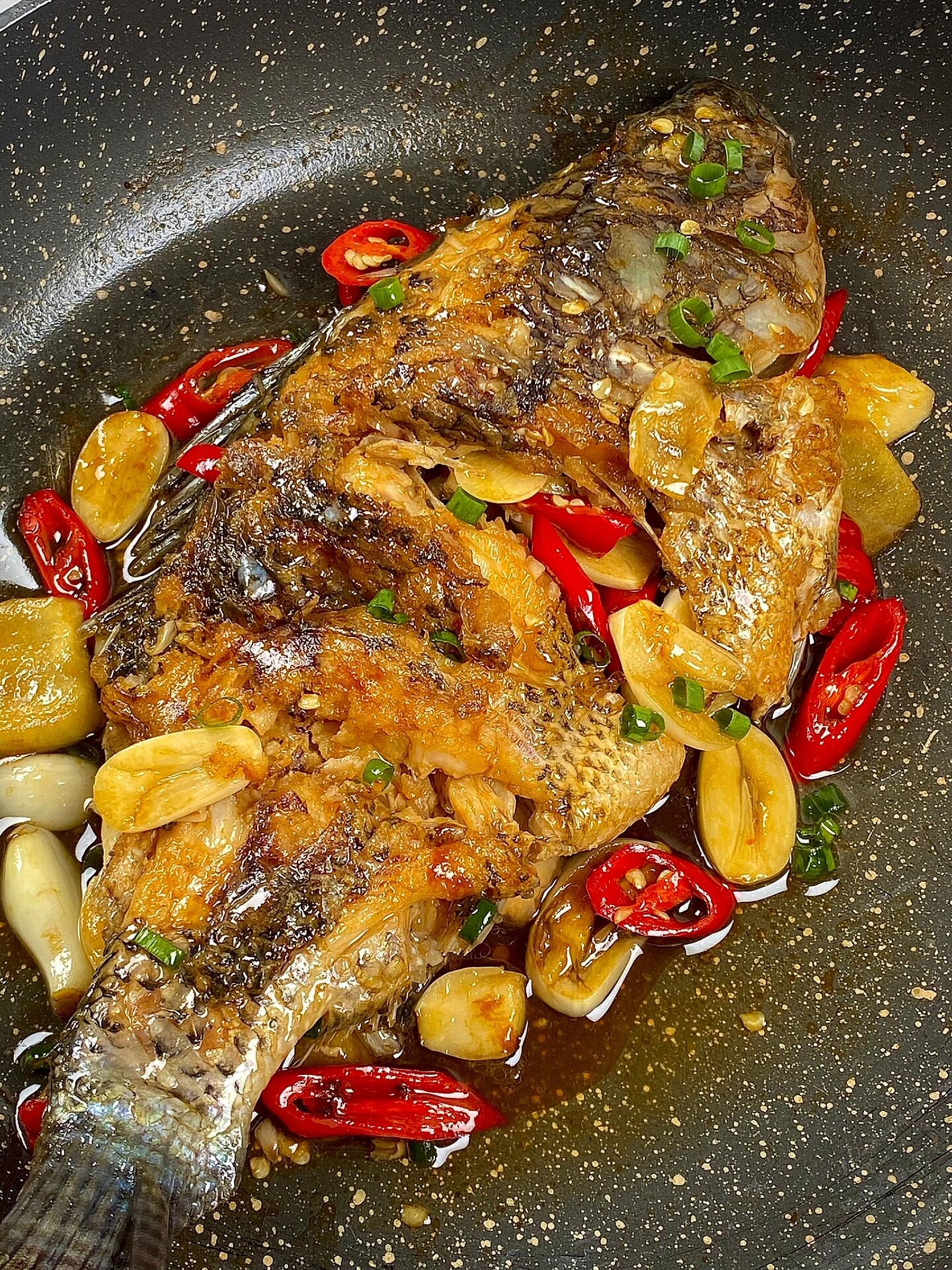 菜单: 1️⃣土豆泥火腿肠 2️⃣红烧鲫鱼 3️⃣肉末鸡蛋豆腐 4️⃣孜然土豆块 5️⃣杏鲍菇鸡蛋 ❤️点击关注追味记❤️ ❤️每天都分享美食❤️
