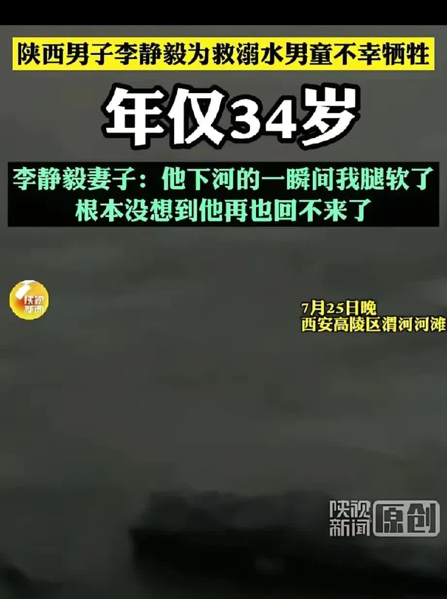 “痛心!”陕西西安,7岁的孩子掉进渭河,男子奋不顾身的跳进去救人,而不幸的失去了生命,年仅34岁 孩子被他使劲托上岸时,他自己却被急流卷得没了影。 他老婆红着眼圈说,看着他跳下去的那一刻,腿都软成面条了,咋会想到这是最后一面?家里小娃还奶声奶气问:“爸爸是不是抓鱼去了?啥时候带糖回来呀?”这话堵在嗓子眼,咋说出口啊? 有人说换作自己,就算会水也不敢跳,上有老下有小的,赌不起。可他跳的那一秒,哪来得及想这些?或许是当爹的本能吧,看见水里扑腾的孩子,就像自家娃在那儿挣扎,脑子一热就冲上去了。 谁家里没本难念的经?房贷要还,老人要照顾,娃要上学,可真遇上事了,总有人把“怕”字咽下去,把“救”字顶上来。我们总说要记住英雄,倒不如多上点心——河边护栏再扎实点,警示牌再醒目点,家长看娃再上心点,是不是就能少些揪心? 其实哪有天生的英雄,不过是普通人在关键时刻,把“我怕”藏起来,把“我来”亮出来。你说,那一瞬间的勇气,到底是从哪儿生出来的?