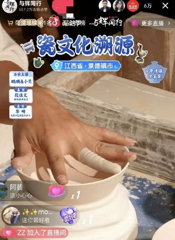 黎明助阵与辉同行景德镇访瓷,人气 6-7 万!鹏鹏和小贝作为主播做讲解和卖货! 嘉宾手法娴熟,技艺高超,一个个瓷器仿佛有了生命,一块块泥土在他们手中化作一件件艺术品。 生活需要艺术,不然那将是一潭死水!生活更需要文化,那是我们的精神寄托!瓷文化,值得了解和学习!你看了吗?