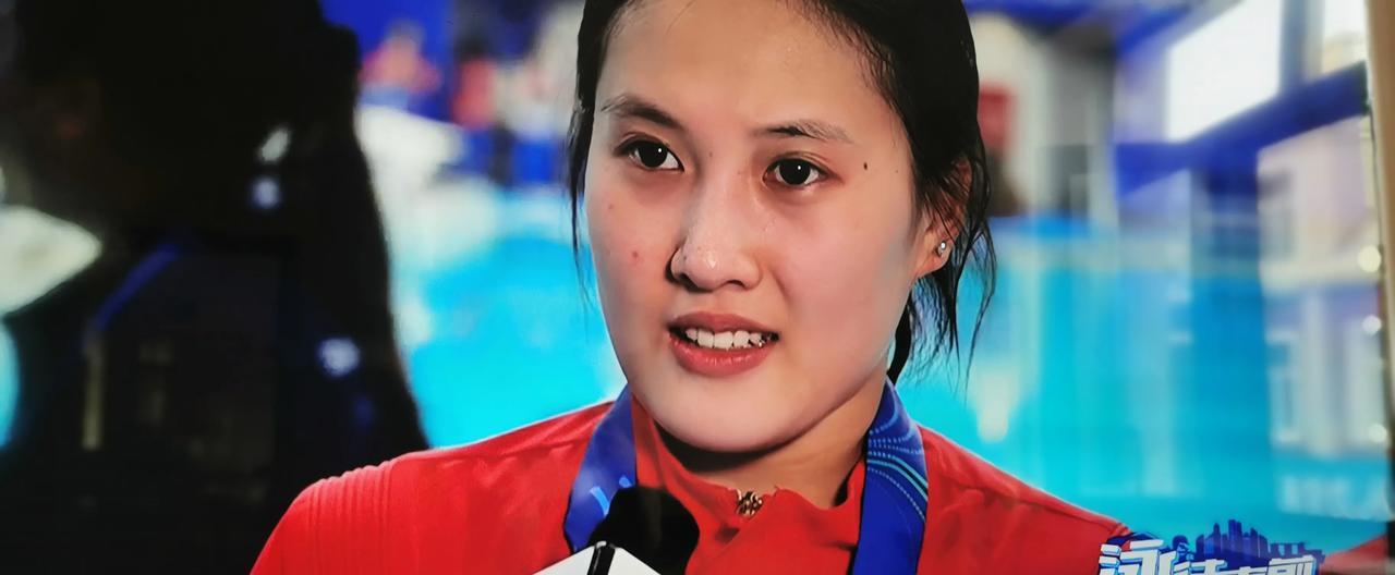 全红婵不在,掌敏杰来了 好看的漂亮姑娘掌敏杰拿到冠军后,轻松的接受采访,笑呵呵的
