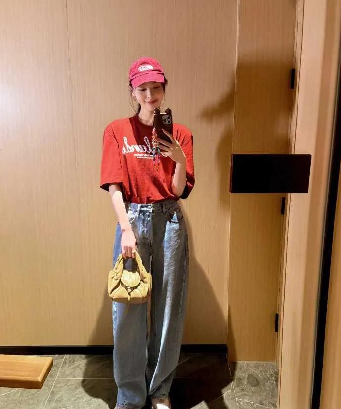 唐嫣“拍自己”穿搭火了!酒红T恤+阔腿裤太绝,彩色手链藏少女心 唐嫣又在社交平台“拍自己”营业啦!一组居家+走廊随拍直接刷屏——酒红色oversize T恤配高腰牛仔裤,松弛感拉满,彩色串珠手链+小熊手机壳戳中少女心,网友狂喊:“这状态哪像孩子妈,明明是大学生逛街既视感!” 穿搭拆解:随性里藏“小心机” - 上装:酒红色烫钻字母T恤,oversize版型遮肉又时髦,暗红调显白还自带复古感; - 下装:高腰阔腿牛仔裤,拖地长度直接把腿拉到“两米八”,胯宽、腿不直星人直接抄作业; - 配饰:红色棒球帽压碎发超减龄,彩色串珠手链+小熊手机壳瞬间活泼,米色云朵包点睛,休闲又显贵。 状态暴击:“松弛美”比穿搭更圈粉 以前总被唐嫣的红毯华丽感惊艳,没想到日常“拍自己”更绝——没有精修滤镜,笑起来眉眼弯弯,随手摆拍的自然感,让网友疯狂共鸣:“原来女明星私下也这么接地气!” 还有人扒出同款T恤只要百元,直呼“唐嫣把平价衣穿出高定感,这审美太能打”! (互动话题:这套“松弛感穿搭”你pick吗?快晒你的“拍自己”时尚作业,让糖糖在线批改! ) #唐嫣# #酒红色穿搭#