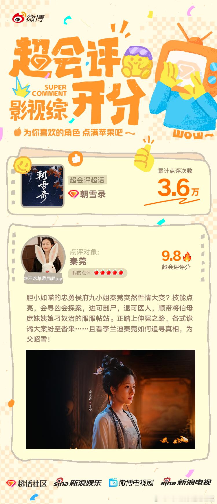 [嘻嘻]更多新剧超会评即将上线,欢迎uu们输出对角色的优质点评,活动发起请关注每月月初公布的活动PR!