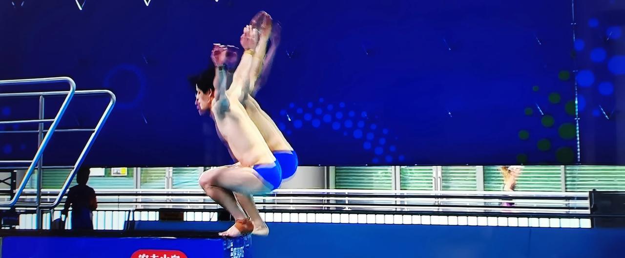 哇!居然成功反超! 就在刚刚写完男子双人十米跳台决赛第四跳失误,也许要追不上了。