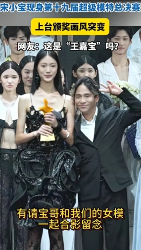 宋小宝现身第19届超模总决赛 这次来当颁奖嘉宾,这次超模选拔历时半年,从全国24个省市,近万人报名,筛选出30名女模特,平均年龄18岁,平均身高1米78,获得冠军的这位是20号湖南选手李嘉滨 宋小宝的这个造型很时尚,在一米78大高个超模的映衬下,个头又矮了一点点