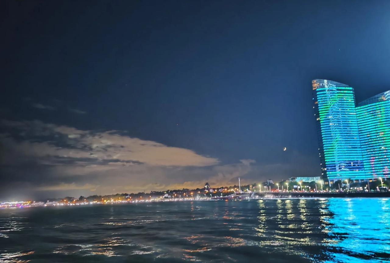 傍晚,看到天边的云很美妙,饭后俩人出去溜达溜达。 好久没晚上遛弯儿了,大王把车停在音乐广场旁,俩人沿着海边儿走走。 海边儿还是太潮湿,没走一会儿,眼瞅着大王后背衣服让汗给湿透了。旁边路过的外地人还说,青岛的海边儿真凉快。[捂脸]