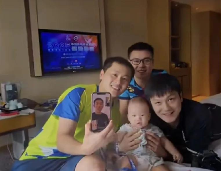 樊振东又抱别人家的娃了,但心里高兴的溢于言表啊! 当然了,抱好兄弟的孩子能不高兴嘛! 说起当年的“欢乐谷小分队”,到今天,有退役后结婚生子的,有退役后交了女朋友感情稳定的,还有退役后还在拼搏事业的,唯有樊振东,单身,现役,还拼搏在赛场上! 尽管不常见面,但感情依旧! 这不,郑培峰应该是带着孩子去看樊振东比赛了,视频中还有程靖淇! 这样的友谊,怎么着隔着多远都不觉得孤独!#樊振东# #郑培峰#