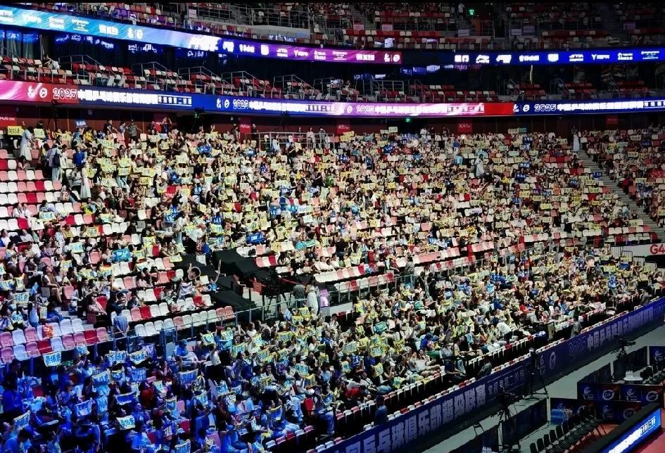 听到现场一女的喊:妈呀!全是我们家的。全场一片黄色的樊星海洋,中间夹杂着王曼昱的蓝。 观众们整齐划一的大喊樊振东,德甲见!镜头捕捉到樊振东歪头看向观众席的画面。不知道他看到是啥,想到的是啥。 看到乒超现场,其实我觉得如果樊振东在国内打球,无论是从比赛压力还是舆论压力一定会给队友分担很多很多。