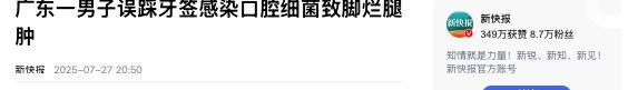 悲剧还是发生了!深圳一男子饭后用牙签剔牙,随手一扔,不小心踩了上去。他没当回事,也没处理伤口,结果几天后,脚上伤口严重感染,脚烂腿都肿了!网友:看来有些人的嘴,还真是“毒”啊! 那天王先生被刚剔过牙的牙签扎到脚,而当时拔出牙签,看伤口不到一厘米深,也没怎么流血,压根没当回事,更别提消毒了。 他以为身体能自己扛住,结果几天后,脚底的伤口直接发黑腐烂,整个脚和小腿烧得通红,肿得像个馒头,钻心的疼让他站都站不起来。 更要命的是,他开始不受控制地高烧、发抖,这是身体在发出最惨烈的求救信号。 到了医院,医生从他脚底的伤口里,硬生生抽出了20多毫升散发着恶臭的脓液。检查结果捅出了真相:罪魁祸首不是牙签有多脏,而是他自己口腔里的常驻细菌! 化验单上清清楚楚写着:星座链球菌、咽峡炎链球菌。这些菌在嘴里时,有其他微生物跟它们互相制衡,所以一直很安分。可当牙签把它们从口腔直接“空投”到脚底的软组织里时,一切都失控了。 脚底皮下组织那个地方,对这些外来户来说,简直就是天堂。那里温暖、湿润,还没有口腔里那些能管住它们的天敌。 于是,这群细菌立刻开始疯狂繁殖、攻城略地,最终把王先生的脚变成了自己的殖民地,引发了一场灾难性的感染。 平时,我们总是警惕生锈的钉子、肮脏的泥土,却忘了自己身体内部也“分帮分派”,有着严格的地盘划分。口腔黏膜能容忍的菌,不代表皮下组织就能接受。 这种内部平衡一旦被一个不起眼的动作打破,自己身体的一部分,就成了攻击另一部分的武器。 王先生在医院躺了半个月才算捡回一条腿。他的教训,比任何健康讲座都来得深刻。 处理伤口,不光要看大小深浅,也要考虑细菌感染的问题。 话说回来,你或者你身边的人,有过因为一个小伤口而吃大亏的经历吗?聊聊看,也给大伙提个醒! (来源:广东一男子误踩牙签感染口腔细菌致脚烂腿肿2025-07-27新快报)