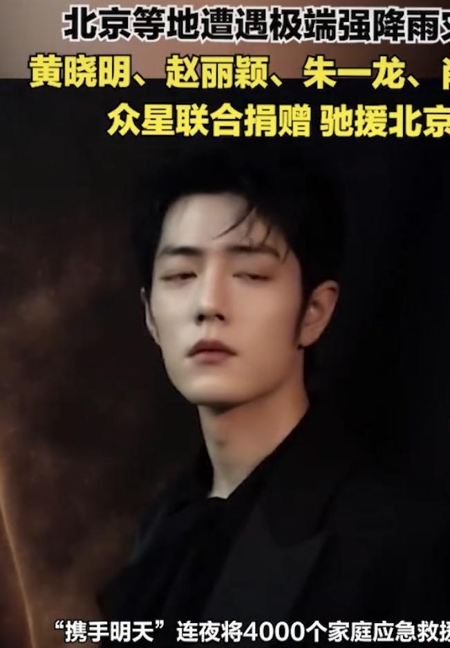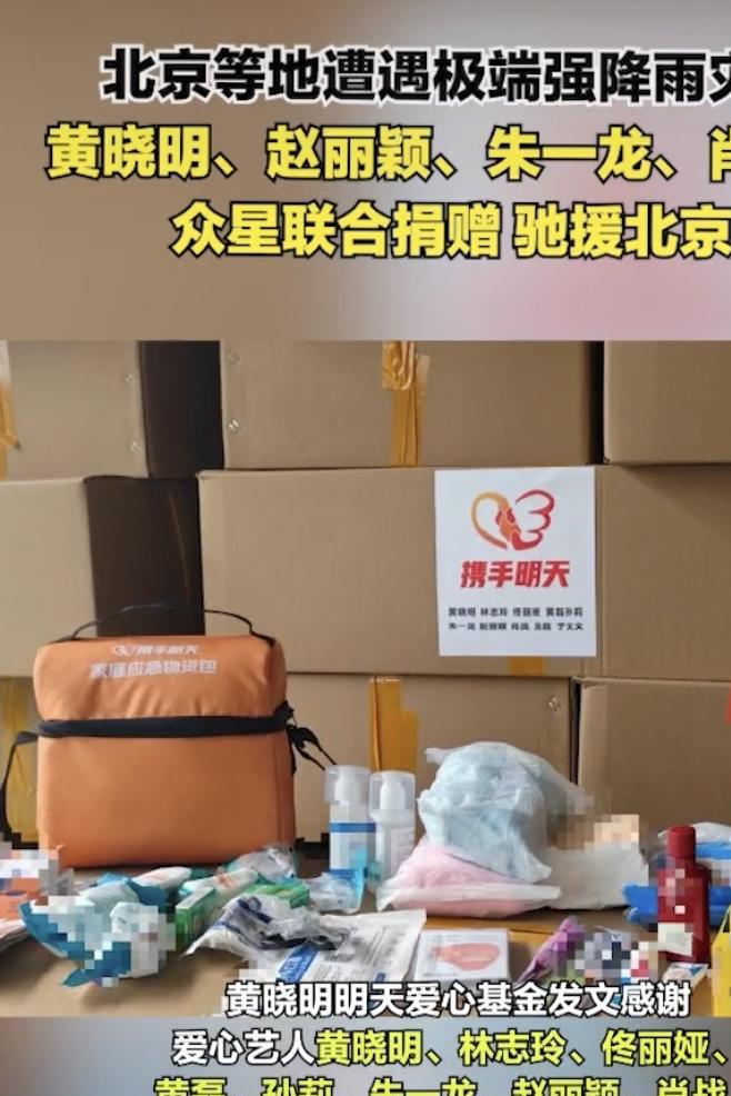 7月北京遭遇连续极端强降雨灾害,灾情严重。截至28日24时,30人因灾死亡,密云28人、延庆2人,全市累计转移80332人,密云、怀柔、房山均转移上万人,136个村电力中断,道路损毁31处。 不过暖心的是,众多明星纷纷伸出援手。7月29日,黄晓明明天爱心基金发文,“携手明天”连夜把4000个家庭应急救援物资包运往受灾地区。这些物资包每个包含20余种医用和生活物资,能满足受灾群众基本需求。而这背后是黄晓明、赵丽颖、肖战、佟丽娅等一众爱心艺人的联合捐赠,为受灾群众带来了希望和温暖。