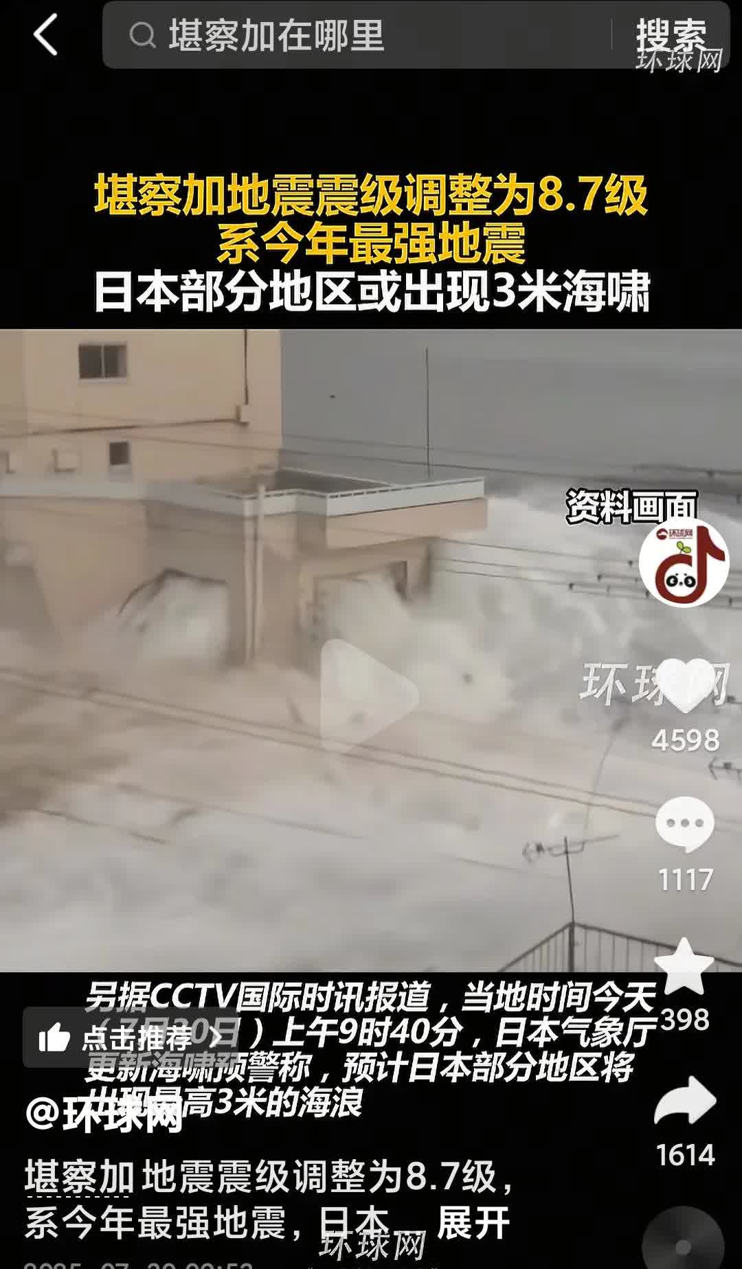 8.1级地震来袭,小本子往哪里跑! 今日早上(7月30日)7时24分,俄罗斯堪察加东岸海域发生了8.7级地震,震源为18千米。 这几天,小本子那时是地震不断,也许是《南京照相馆》里面英灵有知吧,要让小本子们血债血偿。 要知道当年给咱们造成巨大伤害的汶川才7.8级。 这样一对比你就知道这次地震有多可怕、有多恐怖了。 看看最近一个月小本子那边的地震有多少? 吐噶喇列岛地震 :6月21日至7月2日累计监测到超90 0次地震,最高震级5.5级; 鹿儿岛地震 :7月8日发生4.5级地震,1分钟后再次发生4.1级地震;7月14日发生4.2级地震。 堪察加地震 :7月30日发生8.7级地震,震源深度18公里,日本气象厅发布 我又专门查 看了一下地图,今天的这次地震震中距日本本土约1千多公里。而2024年北海道地震:震中距日本直线距离1432千米,就对日本造成了巨大伤害。 此次,对日本的影响肯定还是巨大的。 小本子作恶太多,会遭报应的。