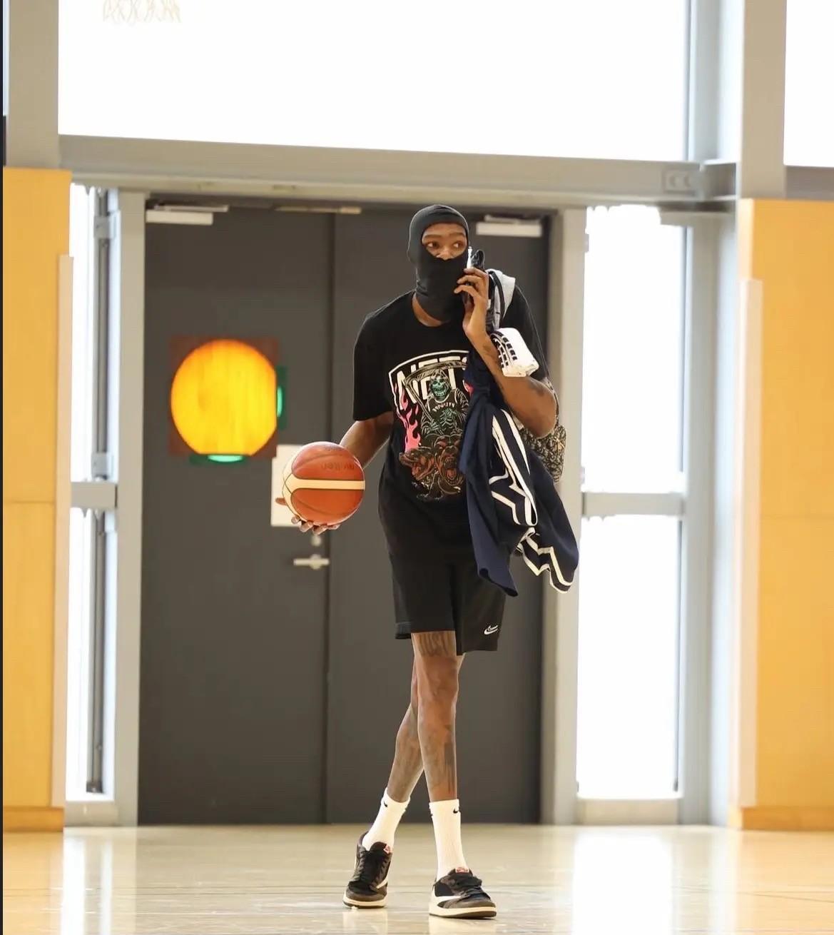 杜兰特蒙面大侠啊 火箭自媒体COACH今日在社交媒体上晒出了杜兰特休赛期蒙面训练