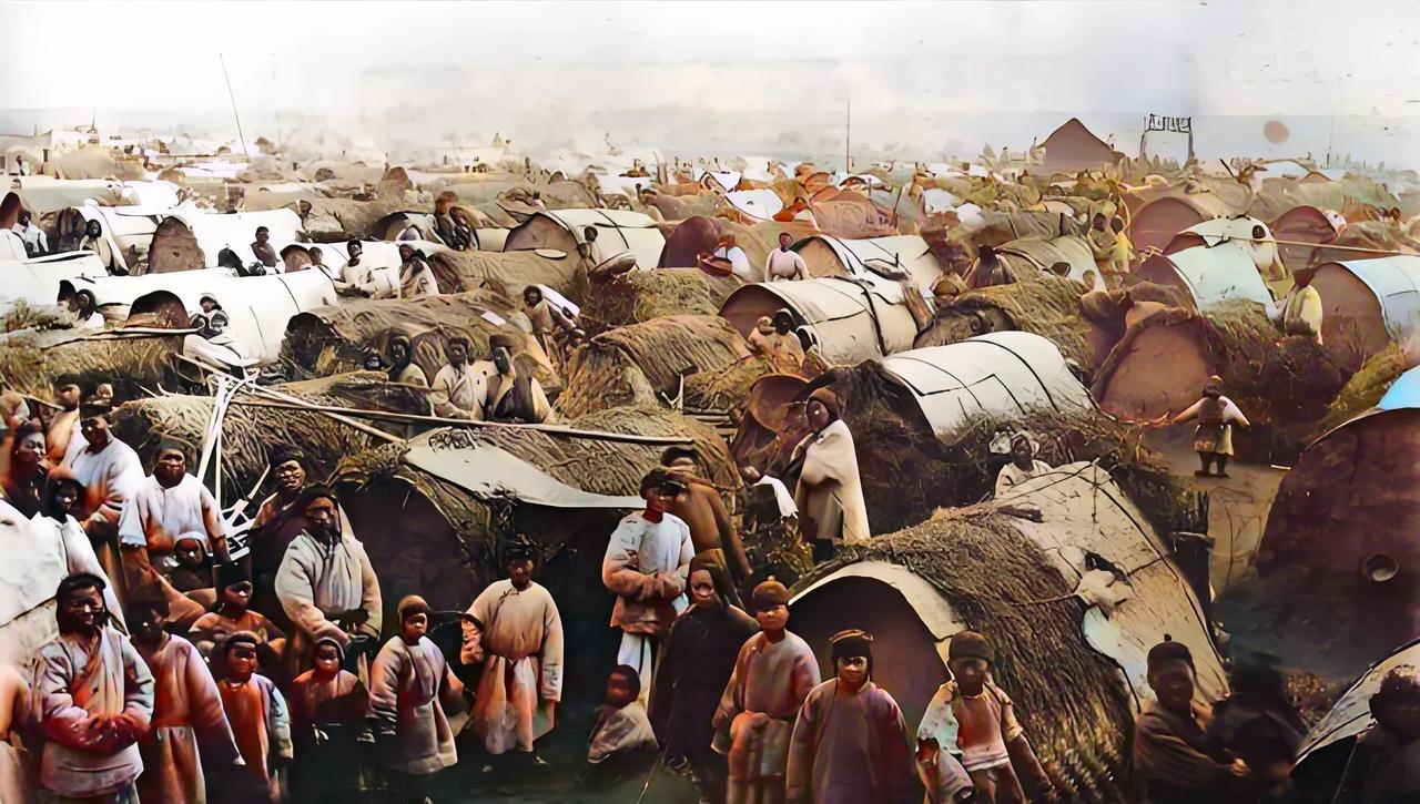 饥饿的盛世,绝望中的生存挣扎 这就是所谓的满清“康乾盛世”到处是绝望的饥民灾民,一个外国人说“中国在满清的治理下不但没有进步,反而是倒退了,连我们丢弃的残羹剩饭都有一堆中国人抢着吃”。 1876-1879年华北连续4年没有下过一滴雨,山西14个县遭遇了千年一遇的旱魔,200天滴雨未下。画面中10位灾民饥肠辘辘、骨瘦如柴、衣衫褴褛,他们身后是坍塌的茅草顶土屋。这场饥荒导致河南饿死300万人,山西每天约1000人死于饥饿,逃荒路上甚至出现“易子相食”“割尸肉充饥”的人间惨剧。 天灾背后是人祸,清政府救灾不力,不管老百姓死活,朝廷发放的那点赈灾粮被腐败官僚层层盘剥,发到灾民手里粒数可数,灾民们只能啃树皮、吃观音土,甚至出现卖儿鬻女、家庭破裂的悲剧。 这场灾荒直接动摇了清王朝统治根基,也催生了近代慈善事业的萌芽。#牢记历史爱我中华# #分享真实的历史#