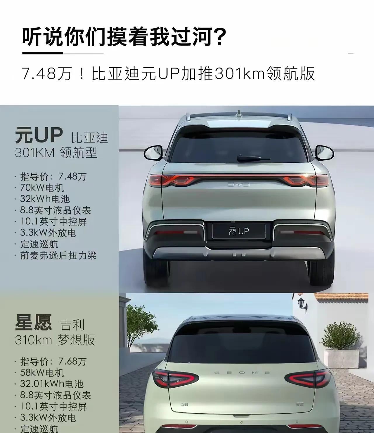 比亚迪的反击,来得干脆。 他怎么也没料到, 吉利会这样被还击。 2025年,比亚迪推出7.48万元的元up领航版,续航301公里。老车友明白这是针对吉利星愿的反击。吉利曾用后发制人策略,以低价大空间抢市场,比亚迪现在如法炮制。元up尺寸更大,电机更强,续航稍短但电池更可靠。这显示比亚迪有实力应对价格战。我认为竞争推动进步,消费者最终受益。 网友表示:比亚迪这次出手直接,让吉利知道市场不是单行道。消费者能买到更实惠的车,是好事。价格战该收敛了,企业该专注创新。这样下去,行业会更健康,大家都有机会。