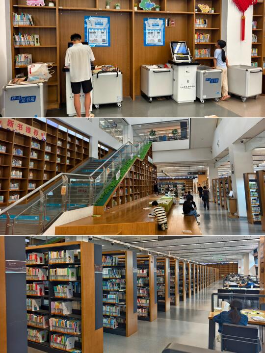 🔥图书馆:共五层,藏百万册,已连续四次获评国家一级图书馆,设有新技术体验区,有音乐、视听等设施 。