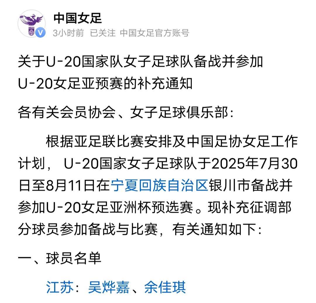 恭喜武汉女足夺得2025赛季女超冠军,实现六连冠,这不是预判,这是中国足协的精心设计。 女超联赛的冠军争夺战已经如火如荼,辽宁女足、江苏女足、武汉女足目前位列三甲,接下来的任何一场比赛都有可能决定本赛季的冠军归属。 为了应对与叙利亚女足、柬埔寨女足、黎巴嫩女足的U20小组赛,中国足协诚惶诚恐、谨小慎微、如临大敌,已经集训一个月了。 今天突然又发文补招6名球员,其中江苏女足2人、辽宁女足4人,难不成是因为现有的U20集训队踢不过叙利亚、柬埔寨、黎巴嫩吗? 显然不是,对阵叙利亚这样的三支队伍,中国女足是根本不需要集训的,中国女足让李铁边踩缝纫机边指挥也是能够踢她们个8∶0、10∶0的。 尤其是,辽宁女足目前排名第一,你把人家的场上队长王爱芳、一号门将侯舒楣都抽走了,接下来叫人家怎么踢? 而江苏女足因为此前的东亚杯、U20两大国家队集训被抽走11名精英已经连日常训练都凑不齐人数,你还要抽人? 换一句话说,中国足协为什么不从上海女足补招人员?答案很简单,上海女足本赛季不可能染指联赛冠军。 举一个例子,U20女足门将位置已经有刘晨等三大顶流在,你还把人家侯舒楣搞去干什么?去做观众吗? 请问,孙雯究竟想干嘛?或者说她究竟怎么想的?
