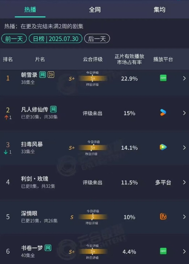 这两年的黑马爆剧云合占比都突破30%,云合最高播放量5000万以上,《深情眼》云合第五,占比只有10%,播放量1000多万,说黑马真的太尴尬了。