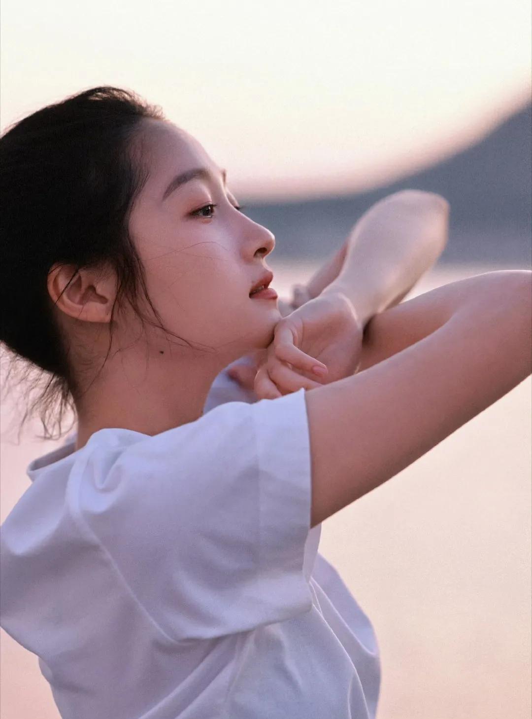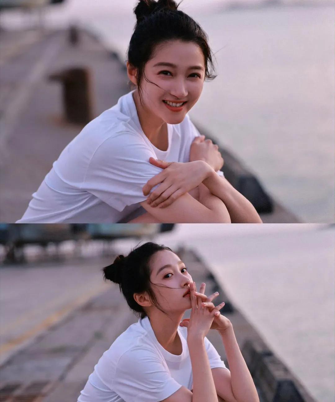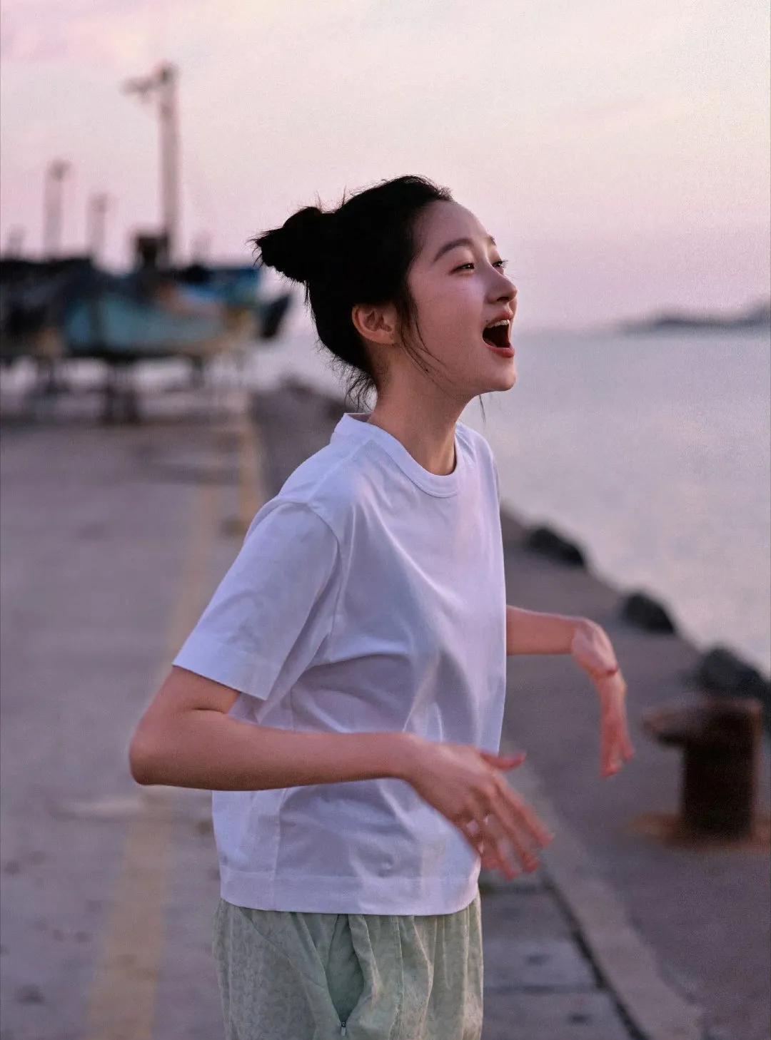 关晓彤晒绝美夕阳美照! 简简单单的白T都能这么美,我也想和晓彤漫步海边看夕阳[送