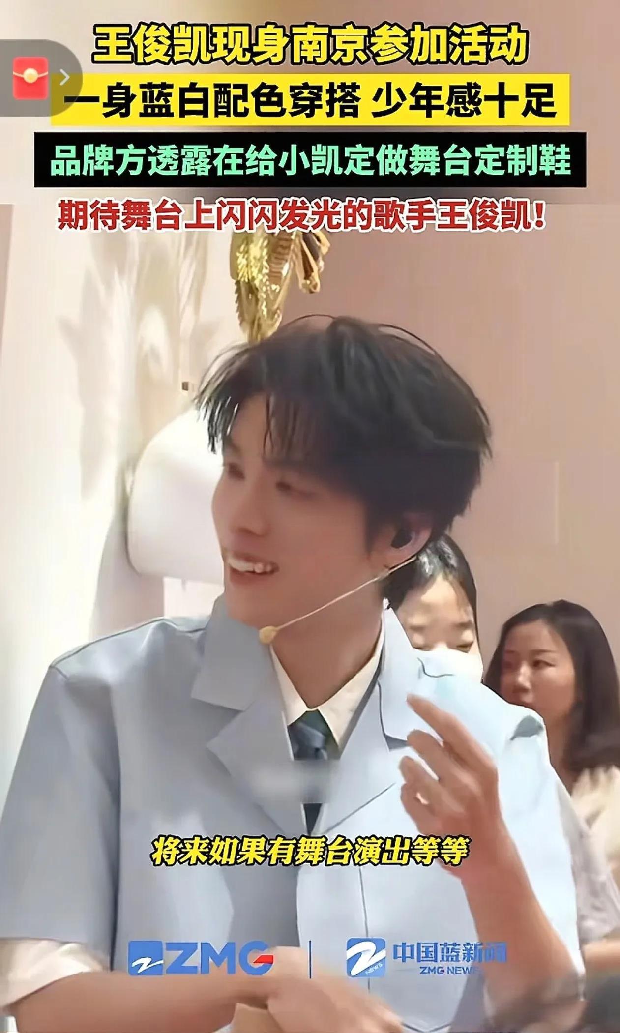 王俊凯南京活动造型太鲨人!蓝白撞色穿搭清爽得像盛夏晚风,白T叠穿牛仔外套少年感快要溢出屏幕,笑起来的梨涡甜到心尖,这状态说是大学生也毫无违和。 如果是我,大概会为重要时刻定制专属鞋子,毕竟每一步都踩着独属于自己的仪式感,就像小凯即将拥有的舞台战靴,藏着对舞台的满满诚意~ 坐等歌手凯闪耀时刻!#明星# #王俊凯衬衫叠穿# #娱乐圈# #娱乐圈每日热议#