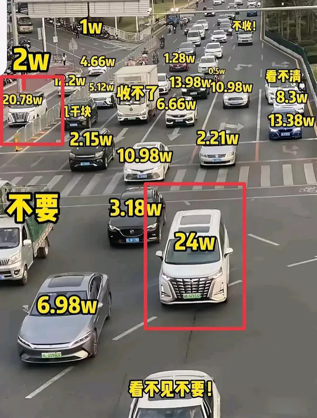 朋友用拍照识价功能,相同车为什么相差这么多,画圈的美女是2w吗?
