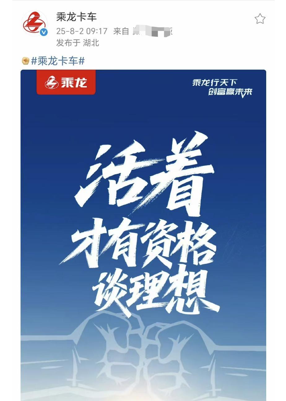 乘龙卡车:活着才有资格谈理想 这个海报很霸气 不过从上一条(图2)来看 乘龙也不