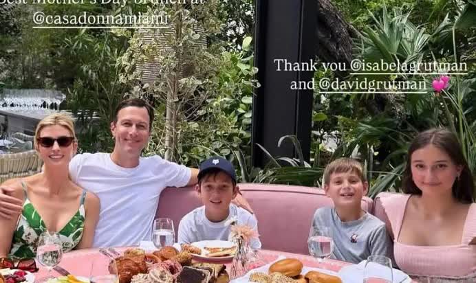 前几天米国大公主伊万卡一家为女儿阿拉贝拉庆生, 阿拉贝拉(漂亮国大统领的皇外孙女)今年十四周岁了,身高175公分。现在和妈妈在一起简直就像是闰蜜一样啊,估计再过几年也会象妈妈一样长个180的大个头。 身高、才华、颜值样样都遗传了,绝对的超模范呀! 伊万卡和库什纳共同育有一女二子,一家五口幸福甜蜜,其乐融融! 从阿拉贝拉的状态来看,她身上有很多伊万卡的影子,嘴眼非常相似,同样选择中分披肩长发气质非凡,母女二人的脸型优势美得淋漓尽致,温婉端庄又有品味。 幸福的家庭总是相似的! 在家庭生日宴会上我们能看到的首先是世界人民都喜欢的烤肉,同时有西红柿片、黄瓜片等果品和各式饮品。另有披萨和面包。 每一个家庭的父母都深爱其子女,而每一个为人子女者也都深为父母的关爱而感到幸福和喜悦。