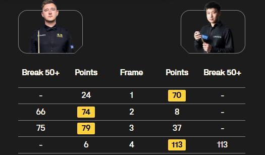 赵心童4-4凯伦·威尔逊,暂时打平,2025斯诺克上海大师赛半决赛即时赛况! 赵