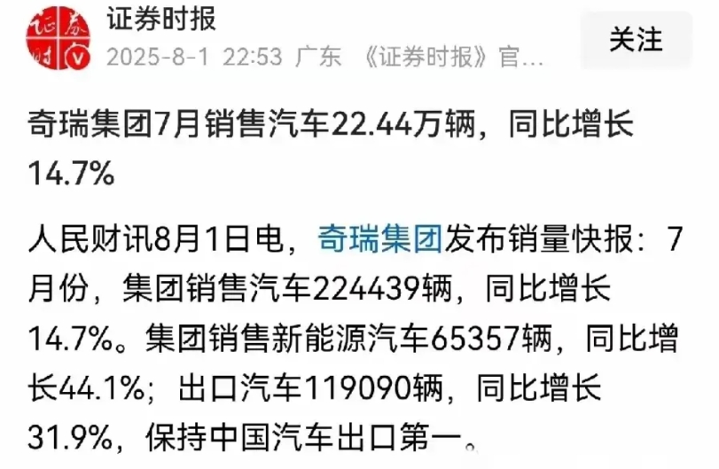 奇瑞国内销量为啥一直没有起色,7月22万销量,出口占一半,国内也就10万出头,奇