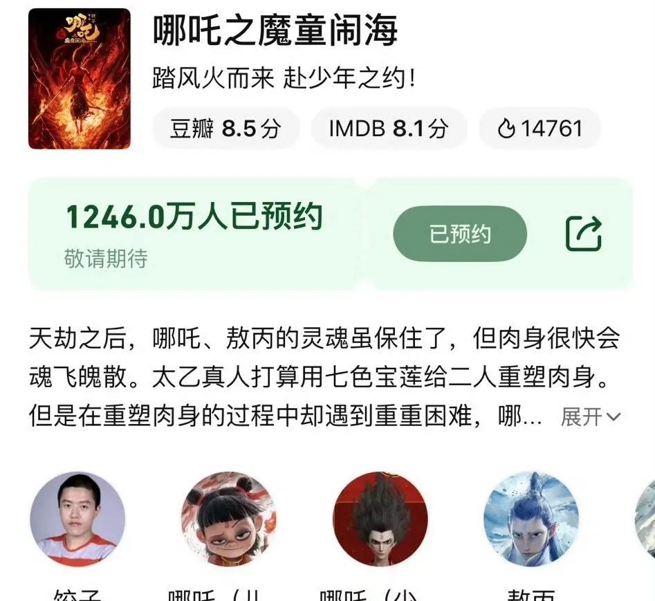 《哪吒2》预约狂飙1246万!国产动画新顶流诞生,这次要烧穿暑期档!