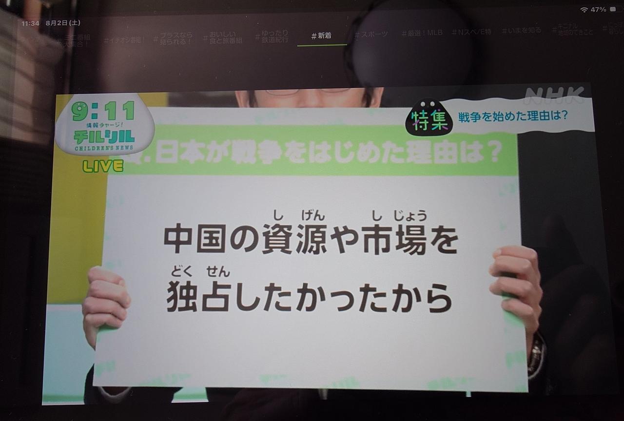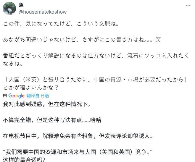 《南京照相馆》的作用开始体现了,至少日本国内也开始讨论战争的原因 日本NHK电视台有一档节目是面对儿童的,里面讲到了1841年日本对英国、美国进行宣战的原因到底是什么?里面也涉及了一些当年日本发动侵略的原因之类的。大概意思是:日本的孩子询问,为什么要发动战争?NHK的解释是:我们需要中国的资源、市场,从而跟英美进行竞争。 请注意,这是一档面对儿童的节目,虽然从某种角度证明了当年日本侵华的不正当性,可是这种讨论未来的导向是什么呢?我个人觉得思维引导应该是:日本要成为大国,就必须向东扩张,需要这么一大片资源、市场。 当然,也不是所有日本人都接受这种说法,评论区就有日本网友表示:这好像把日本形容为一个很糟糕的国家(地理、生存环境)。而且现在日本国内还有一种讨论:日本其实就是在自卫,因为如果日本不奋起反抗,整个东亚都会成为英国的殖民地。 先不管他们的观点对不对吧,至少他们开始讨论了,不过他们现在反思的内容是:当年为什么要对英美宣战。