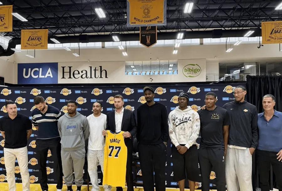 东契奇要取代詹皇的节奏啊。 在东契奇签约发布会上所有湖人的选手和教练都来到了现场