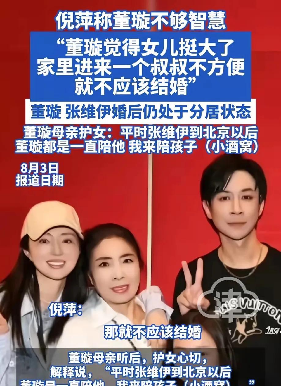 果然姜还是老的辣! 董璇在节目中表示自己的女儿很大了,跟张维伊住在一起不方便,所以一直跟张维伊分居 倪萍老师说的完全正确,你跟人家领证了,你还不跟人家回家和人家分居,就不应该和人家结婚,二婚太不理智了。 其实男方做了很多功课,学习如何跟孩子相处,也去接过孩子,带孩子去玩,孩子跟他相处的也不错,董璇还是不信任他,这段婚姻,撑不了多久
