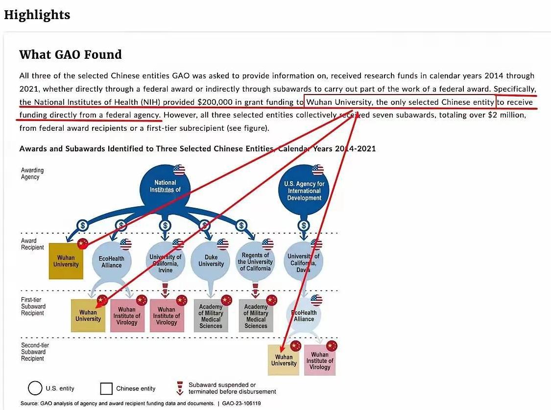 这个料爆的有点猛。 有网友爆料,说某网络能手,通过破译一份美国政府审计署(GA0)的报告,扒拉出5年前那个敏感时期,5大曾经接受过一笔研究资金,用于科研项目的研究。 这笔资金为20万美金,来源地为美国国立卫生研究院(NlN)。 但是,毕竟未经官方证实,因此真实性存疑。希望大家理性看待。 [信息来源于网友帖文,如侵即删]