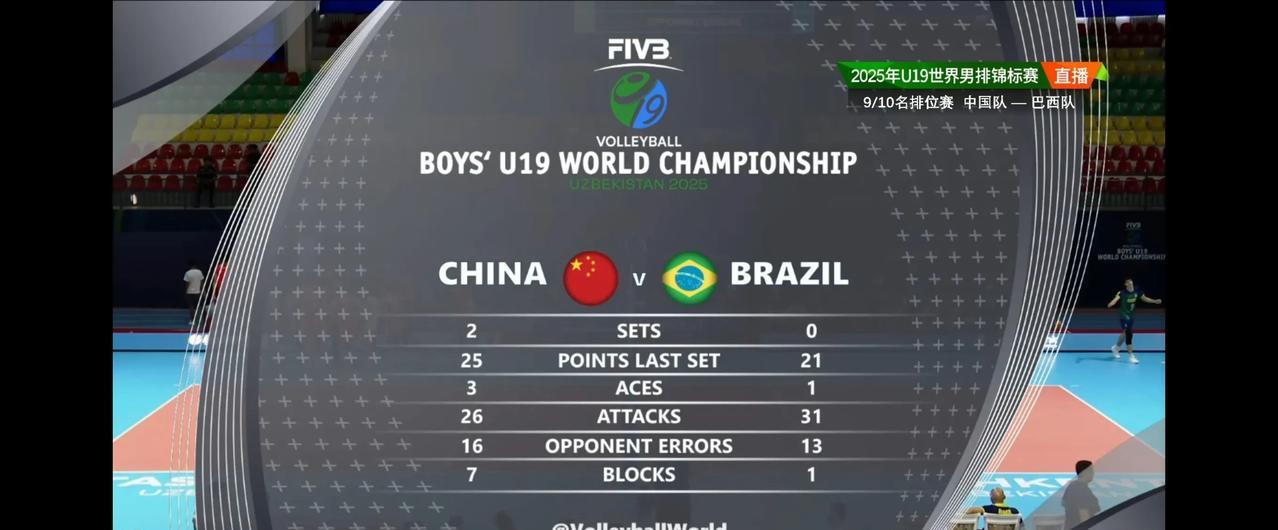 U19男排世锦赛9-12名排位赛,中国U19男排前两局2-0胜巴西U19男排啦! 有挑战还是不错的,我们挑战成功争回了一分。 第一局中国U19男排27-25险胜, 第二局中国U19男排25-21胜, 希望第三局我们能胜的更轻松点。 中国U19男排比分领先时,有阶段性连续丢分,要不然我们赢的还能快点。 #分享城市新鲜事#44