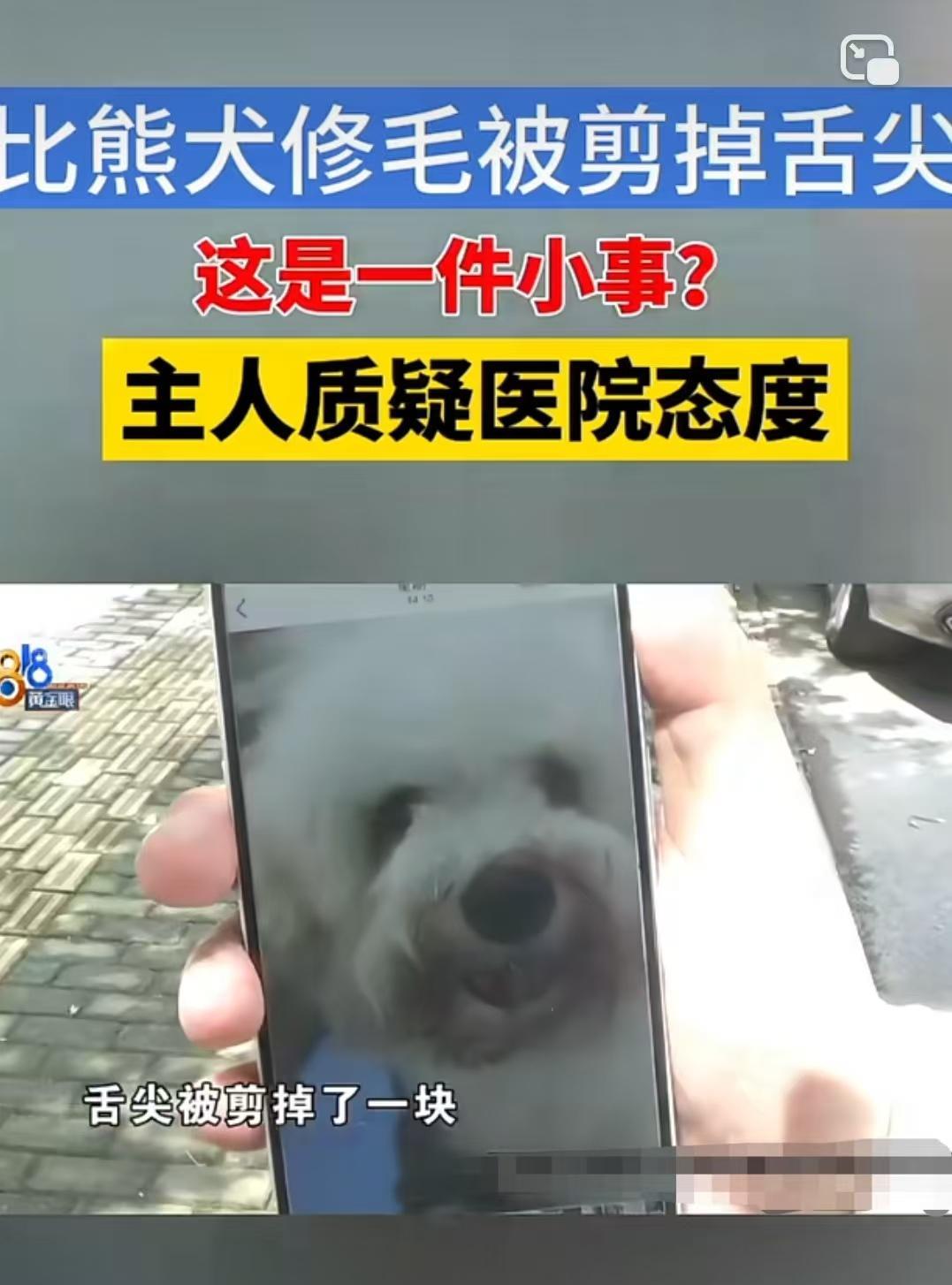 浙江嘉兴,女子带比熊犬去修毛,结果美容师一刀把小狗的舌尖剪掉了,女子发现小狗毛上