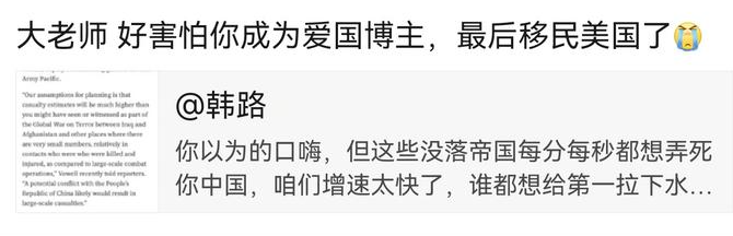 韩路: 你放心我绝对不会移民美国,我干嘛从一个先进国家移民到一个机制体制落后国家!