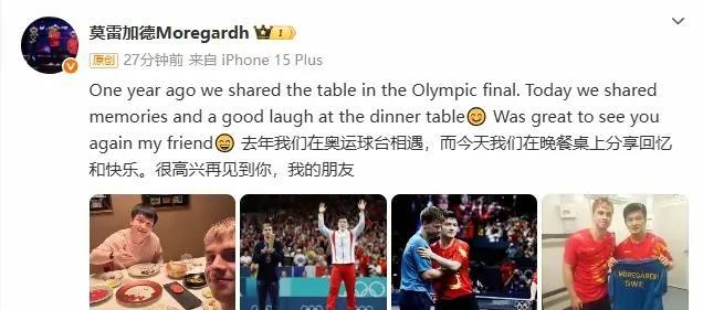 莫雷加德发文跟樊振东聚餐,那是忆巴奥叹今惜的,如果你给东东准备些中餐会更好!