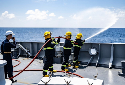 按照菲律宾军方的通报,菲律宾军方和印度海军“东方舰队”演习科目,包括了防空演习,超视距瞄准演习、反潜战演习、海上补给演习等。对于菲律宾军方和印度海军“东方舰队”的联合演习,中国解放军南部战区表示,“8月3日至4日,中国人民解放军南部战区海军位南海海域进行例行巡航”。“菲律宾拉拢域外国家搅局南海”,“战区部队持续保持高度戒备,坚决捍卫国家领土主权和海洋权益。”据称印度海军“东方舰队”在南海进行了首次实弹炮击训练,舰载防空火炮对模拟目标进行了拦截(图1)。