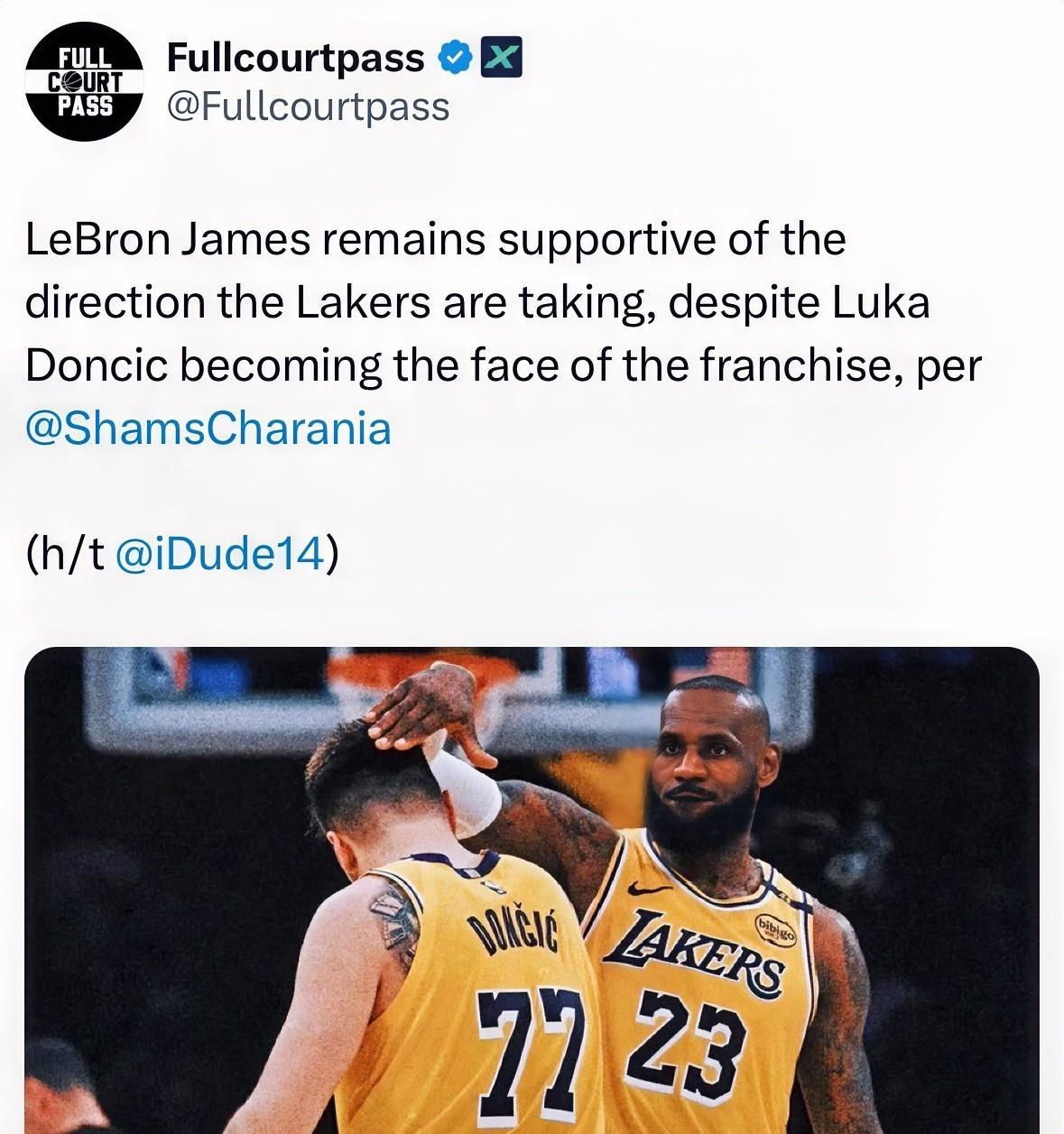 詹姆斯一心致力于帮助湖人取胜! 据shams爆料,尽管东契奇如今已成为湖人的代表人物,但詹姆斯依旧支持湖人未来的发展走向。 据NBA记者Brett Siegel报道,虽然人们都在议论詹姆斯在洛杉矶过得并不愉快,可是詹姆斯仍然一心致力于助力湖人在2025 - 26赛季取得胜利,而且从未断绝与湖人的联系,詹姆斯全力支持湖人以卢卡为核心的建队策略,在前几天东契奇续约之后,詹姆斯第一时间就通过视频向卢卡表示了祝贺。詹姆斯从未向湖人提出交易申请要求离队,网络上的那些消息都是假消息,是部分记者胡编乱造的。 詹姆斯目前正在积极备战新赛季,每天凌晨四点左右就已经出发训练了,准备开启职业生涯的第23个赛季。#NBA# #詹姆斯# #湖人# #勒布朗·詹姆斯# #NBA热点#