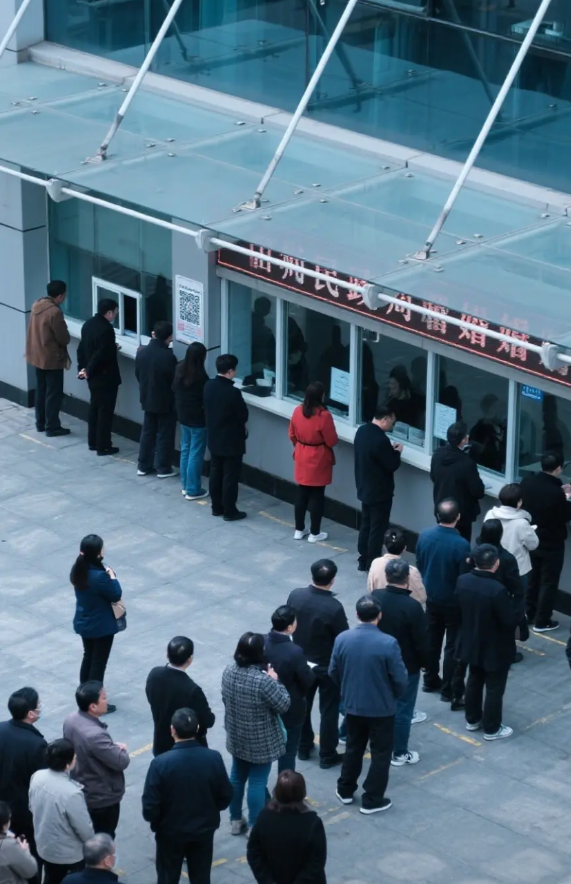 照片明明是排队做核酸却上面拉着字标“婚姻解除处”[大笑]