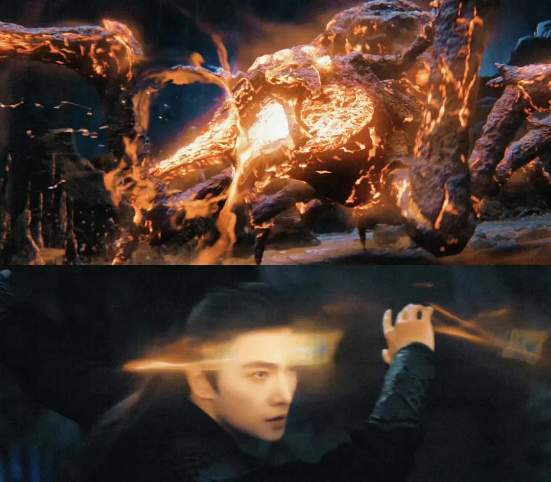 虽然,我曾吐槽过故事内容和杨洋演技,但《凡人修仙传》的打戏和特效,应该算是目前国内同类型里,做的相当不错的。 最新更新的矿洞打戏,韩立一人对抗多人,打戏飘逸潇洒,飞行瞬移加偷袭,既有张力又有观赏性。 还有韩立对抗大蜘蛛的武打效果,真的很吸引人,有那种玩游戏的既视感,就像拿着手柄沉浸式和蜘蛛对抗。此时你不仅仅是观众,可能已经变成了韩立。 此前,韩立和王蝉的打戏,也是让人看得酣畅淋漓。看幕后花絮,杨洋能够完成各种高难度的威亚动作,还是有基本功在那里摆着的。